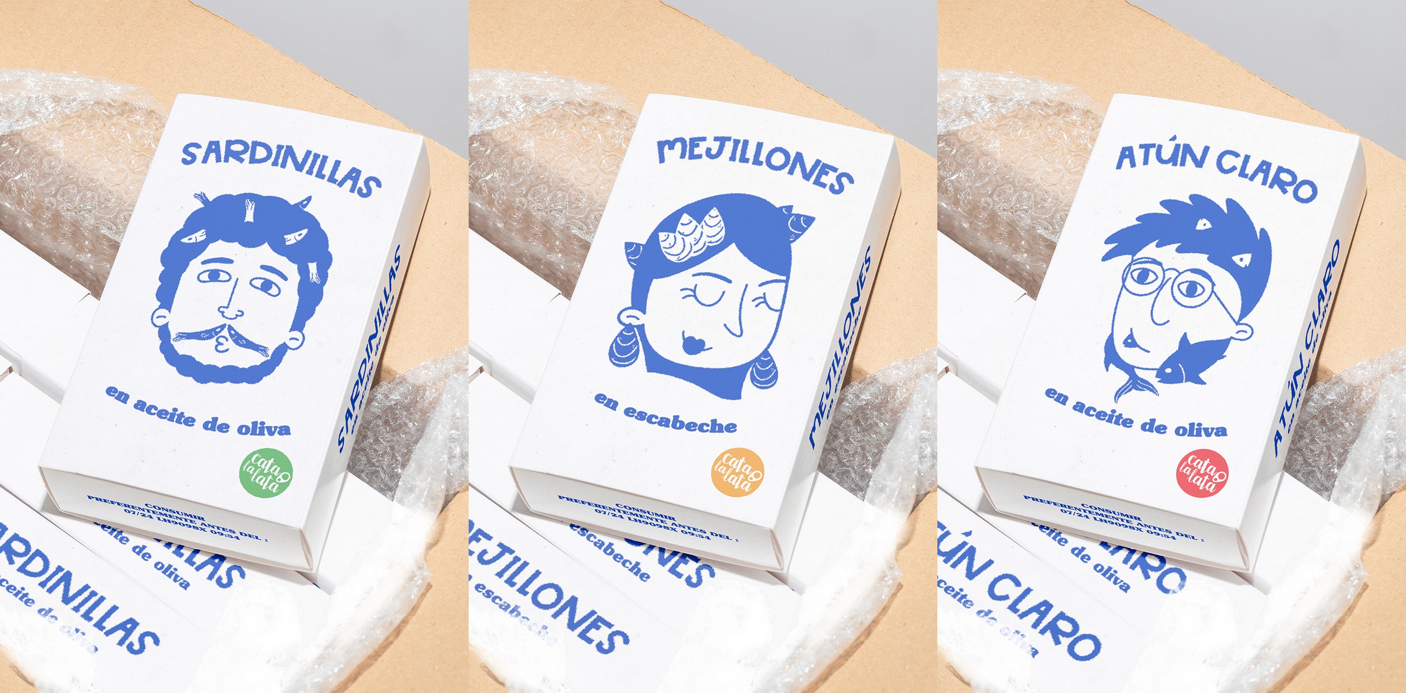 Packaging para el concurso nacional de Cata La Lata. El objetivo era actualizar el envase de conservas (mejillones, sardinas y atún) y hacerlo más atractivo para un público joven, alejándose de la estética convencional del sector.