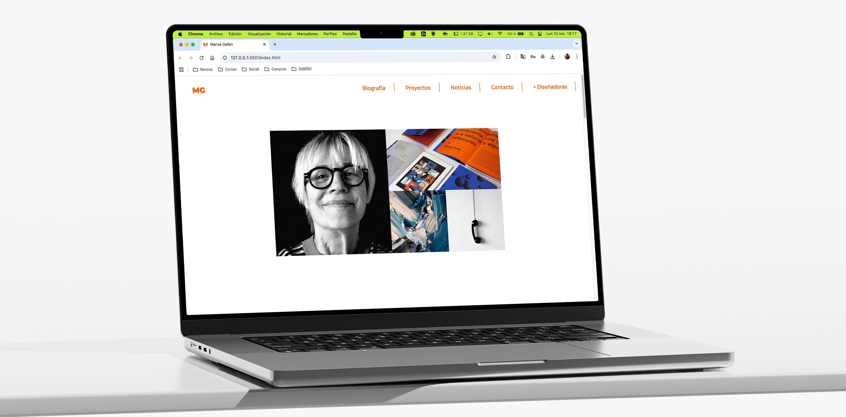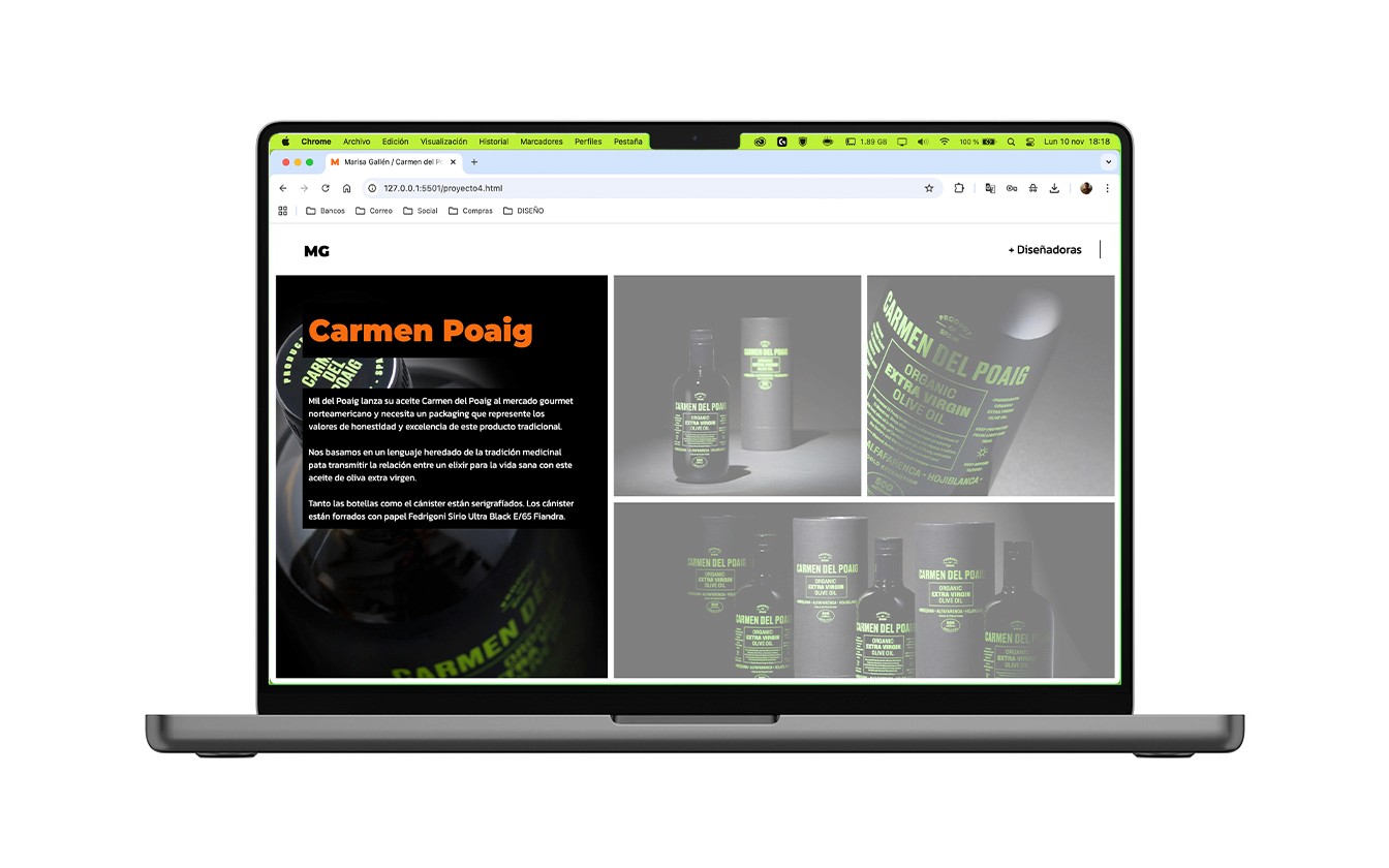Diseño de web creado en HTML y SASS (CSS) para la diseñadora valenciana Marisa Gallén. El objetivo era trasladar su trayectoria y filosofía profesional al entorno digital mediante una página estructurada en secciones de biografía, proyectos, noticias y contacto.